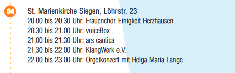Die Marienkirche füllte sich, unser Frauenchor trat als erster Chor auf und begeisterte die vielen Zuhörer mit ihrem 30 minütigen Programm.